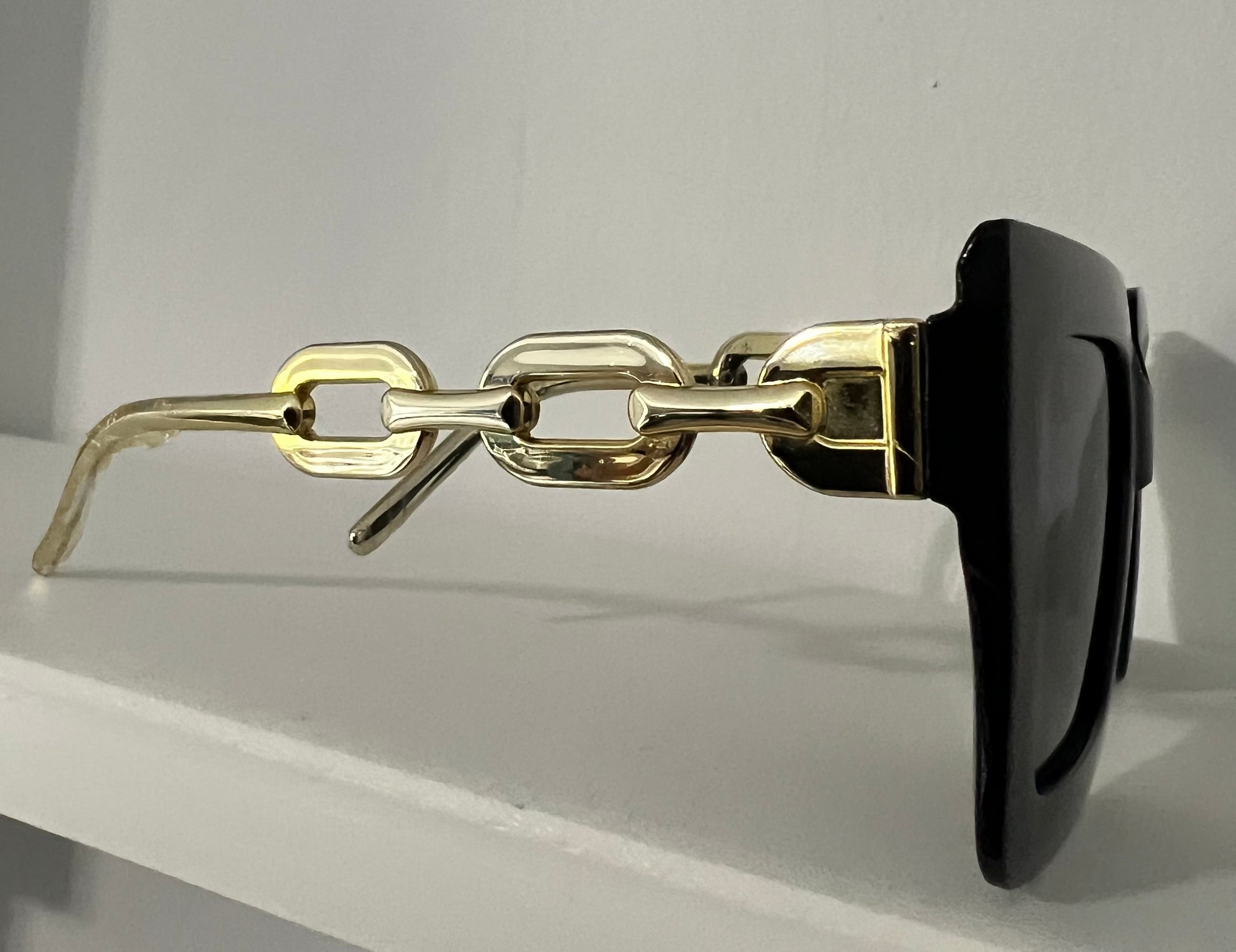 Elevate your look with these popping trendy Gold Linked Shades! Turning any style from basic to fabulous the gold links bring a pop of flash to these gorgeous square framed shades. Offered in black, white and apricot to level up any look!!