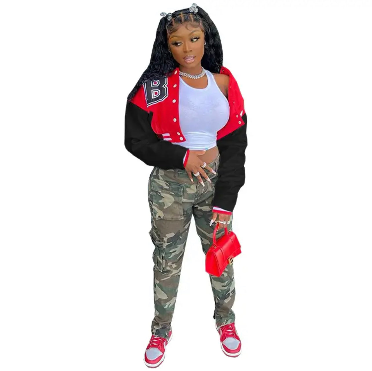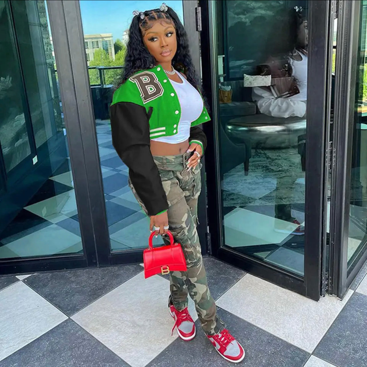 Imagine you in our trendy varsity jacket, the ultimate fashion statement for the fall season. This cropped jacket is designed to impress with its cute and stylish appearance. Crafted with attention to detail, it seamlessly combines the classic varsity style with a modern twist.
